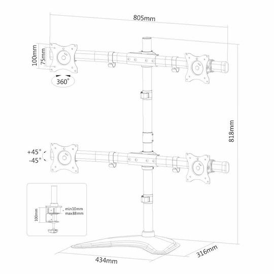 Neomounts Επιτραπέζια Βάση για 4 Οθόνες έως 27″ με Βραχίονα (NM-D335D4BLACK)