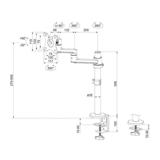 Η Neomounts DS60-425BL1 NEXT Lite είναι μια πλήρως αρθρωτή βάση γραφείου για οθόνες έως 27″ με μέγιστη ικανότητα βάρους 8kg. Η ευέλικτη τεχνολογία κλίσης (120°), περιστροφής (360°) και στροφής (180°) επιτρέπει την προσαρμογή της βάσης στη βέλτιστη γωνία θέασης για την οθόνη σας. Επιπλέον, η βάση διαθέτει χειροκίνητη ρύθμιση ύψους και βάθους για τη δημιουργία της τέλειας θέσης εργασίας. Λόγω του κοντού άξονα T-Rex της NEXT Lite, απαιτείται ελάχιστο βάθος όταν τοποθετείται κοντά σε τοίχο ή διαχωριστικό πάνελ. Αυτό επιτρέπει την τοποθέτηση της οθόνης σε μεγαλύτερη απόσταση από τον χρήστη, κάτι που είναι καλύτερο για τα μάτια και αφήνει επίσης περισσότερα χώρο για καλή εργονομική στάση εργασίας. Το έξυπνο σύστημα εσωτερικής διαχείρισης καλωδίων εξασφαλίζει τη σωστή κατεύθυνση των καλωδίων. Η DS60-425BL1 είναι κατάλληλη για οθόνες που πληρούν το πρότυπο τρυπών VESA 75×75 ή 100x100mm. Η DS60-425BL1 είναι εξοπλισμένη με ένα σύστημα VESA εύκολης απελευθέρωσης για εύκολη εγκατάσταση και διαθέτει τόσο κλιπ γραφείου όσο και γρομπέτα.