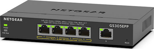 NetGear GS305EPP Unmanaged L2 PoE+ Switch με 5 Θύρες Gigabit (1Gbps) Ethernet