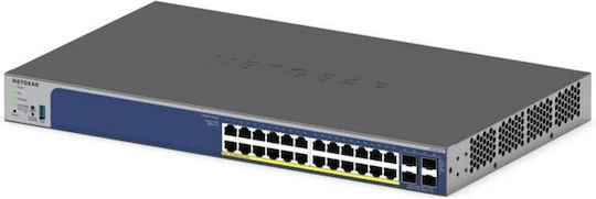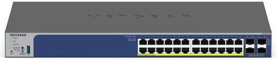 Διαχειριζόμενος διακόπτης Netgear GS728TXP-300EUS με 24 θύρες 1GbE και 4 θύρες SFP+. Υποστηρίζει PoE+ με συνολικό προϋπολογισμό ισχύος 190W.