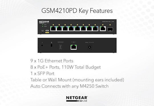 NetGear GSM4210PD Managed L2 PoE Switch με 9 Θύρες Gigabit (1Gbps) Ethernet και 1 SFP Θύρα