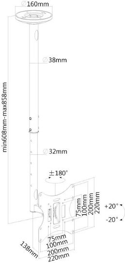 Βάση οροφής για οθόνες διαστάσεων 10 – 40″.