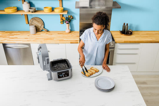 Το νέο Ninja® Speedi 10-σε-1 Πολυμάγεριας & Φριτέζα Αέρος, διατίθεται τώρα σε ένα συμπαγές, εύκολο στην αποθήκευση μέγεθος, όπου το επίκεντρο είναι η γρήγορη παρασκευή γευμάτων.
