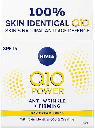 Η αντιρυτιδική κρέμα ημέρας Q10 Power της Nivea περιέχει συνένζυμο Q10 που είναι 100% πανομοιότυπο με αυτό της επιδερμίδας και προσφέρει προστασία από τις UV ακτινοβολίες με SPF15.