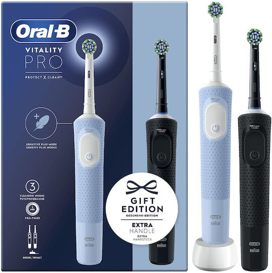 Oral-B Vitality Pro Protect X Clean Ηλεκτρική Οδοντόβουρτσα με Αισθητήρα Πίεσης Μπλε / Μαύρη Διπλή Συσκευασία