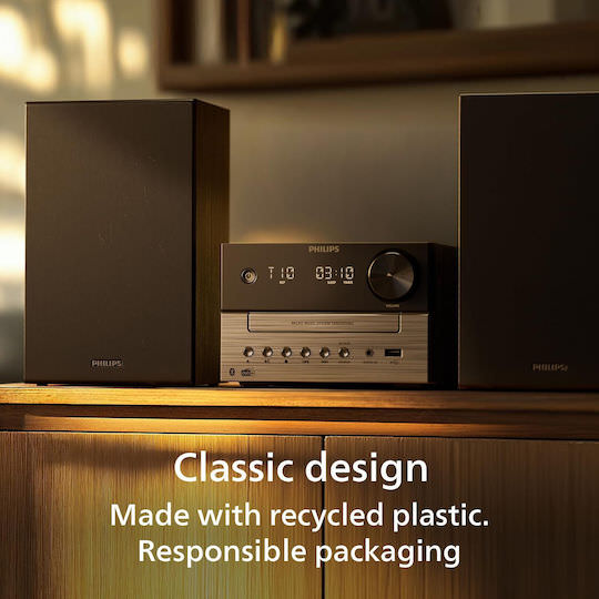 Η Philips δεσμεύεται για την προστασία του περιβάλλοντος, ενσωματώνοντας σε αυτό το προϊόν ανακυκλωμένο πλαστικό με πιστοποίηση GRS (Global Recycled Standard). Η συσκευασία του συστήματος είναι πλήρως υπεύθυνη, καθώς δεν περιέχει πλαστικό και χρησιμοποιεί ανακυκλωμένο χαρτόνι με πιστοποίηση FSC. Ακόμα και τα ένθετα είναι τυπωμένα σε ανακυκλωμένο χαρτί με μελάνι με βάση τη σόγια. Επιλέγοντας αυτό το Hi-Fi, απολαμβάνετε κορυφαία τεχνολογία συμβάλλοντας ταυτόχρονα στη μείωση του περιβαλλοντικού αποτυπώματος.