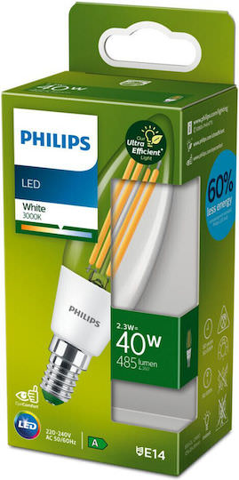 Philips Λάμπα LED 40W 125mm για Ντουί E14 και Σχήμα B35 Θερμό Λευκό 485lm