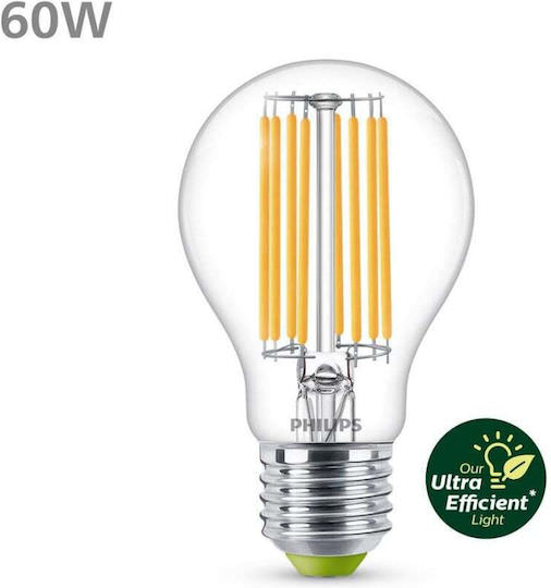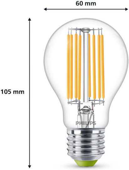 Philips Λάμπα LED 4W για Ντουί E27 και Σχήμα A60 Θερμό Λευκό 840lm