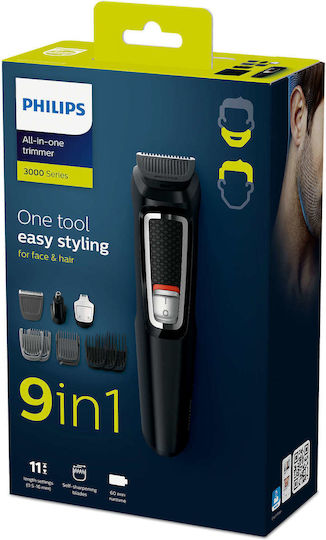 Philips Multigroom Series 3000 Σετ Επαναφορτιζόμενης Κουρευτικής Μηχανής Μαύρο MG3740/15