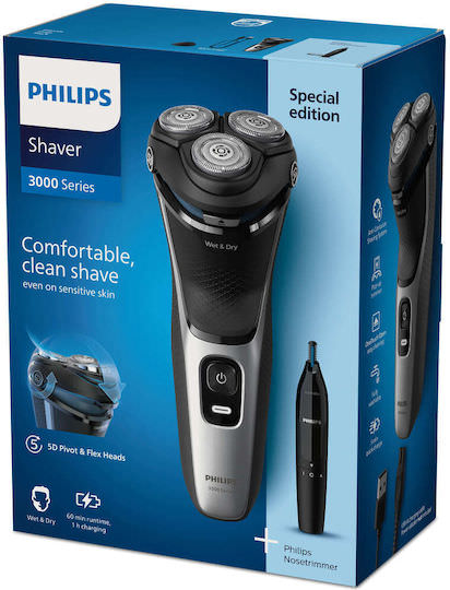 Η ηλεκτρική ξυριστική μηχανή σειράς 3000 της Philips για υγρό και στεγνό ξύρισμα σας προσφέρει άνετο, βαθύ ξύρισμα, ακόμα και σε ευαίσθητο δέρμα. Οι κεφαλές 5D Pivot & Flex, οι 27 αυτοακονιζόμενες λεπίδες PowerCut και η δυνατότητα χρήσης σε υγρό και στεγνό δέρμα εξασφαλίζουν εξαιρετικά, αξιόπιστα αποτελέσματα κάθε φορά.
