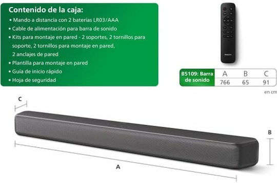 Philips Tab5109 Soundbar 2.0 Bluetooth και HDMI 120W με Τηλεχειριστήριο Γκρι