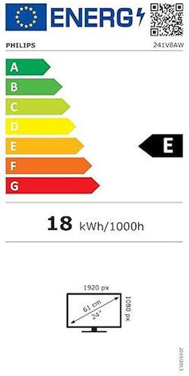 Philips V Line 241V8AW IPS Monitor 23.8″ FHD 1920×1080 με Χρόνο Απόκρισης 4ms GTG