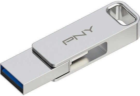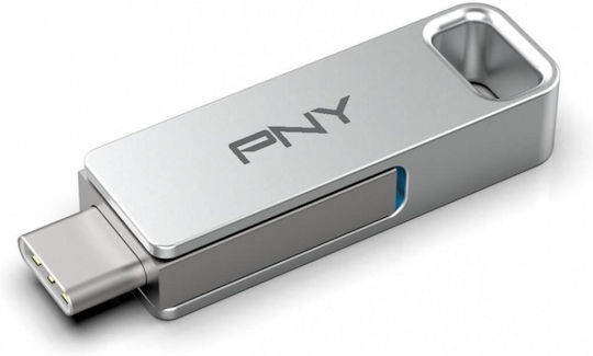 PNY Duo Link 64GB USB 3.2 Stick με σύνδεση USB-A & USB-C Ασημί
