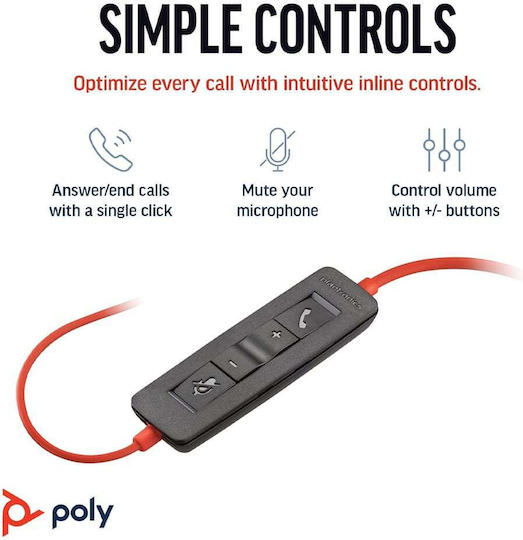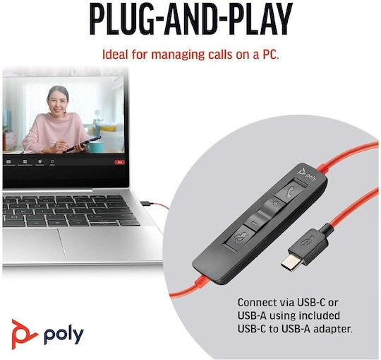 Poly Blackwire 3220 On Ear Multimedia Ακουστικά με μικρόφωνο και σύνδεση USB-A / USB-C