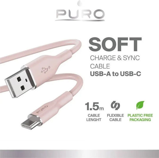 Puro Icon Soft USB 2.0 Cable USB-C male – USB-A 18W Ροζ 1.5m