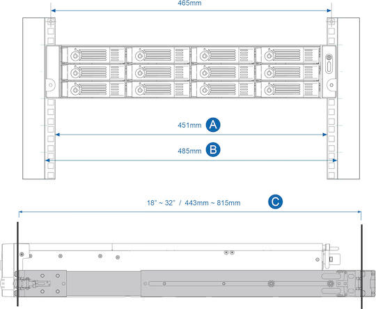 Το QNAP Rail Kit βοηθά στην εγκατάσταση ενός rackmount από QNAP NAS. Οι κινούμενες ράγες κάνουν πιο εύκολη την εισαγωγή και εξαγωγή του QNAP NAS διευκολύνοντας έτσι τη συντήρηση και την οργάνωση. Τα μοντέλα rackmount QNAP NAS συμμορφώνονται με πρότυπα ANSI/EIA-RS-310-D