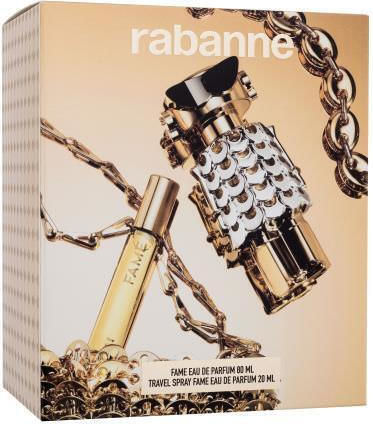 Το σετ αρωμάτων Rabanne Fame περιλαμβάνει το εκλεπτυσμένο Eau de Parfum, σχεδιασμένο για γυναίκες που επιθυμούν να εκφράσουν τη μοναδικότητά τους. Η σύνθεση του αρώματος είναι μια τέλεια ισορροπία ανάμεσα στις νότες που αναδεικνύουν την κομψότητα και τη δυναμική της σύγχρονης γυναίκας.