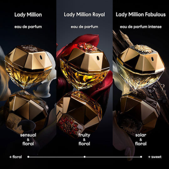 Φρουτένιο και λουλουδένιο άρωμα Lady Million Royal του οίκου Paco Rabanne.