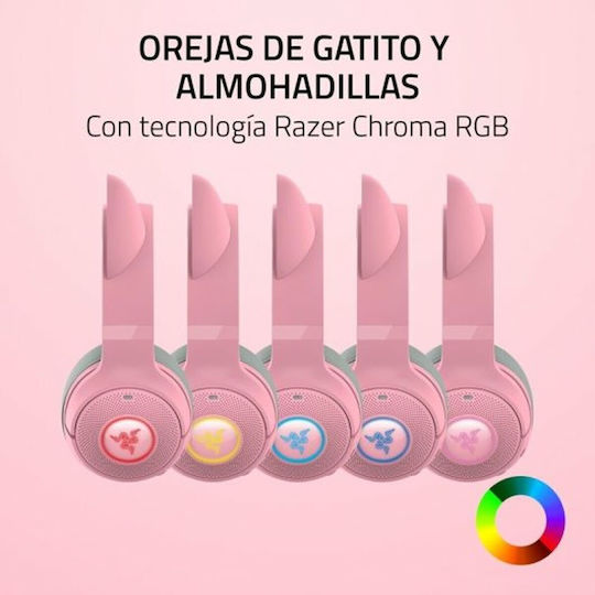 Razer Kraken Kitty V2 BT Ασύρματα / Ενσύρματα Over Ear Ακουστικά με 40 ώρες Λειτουργίας Ροζ