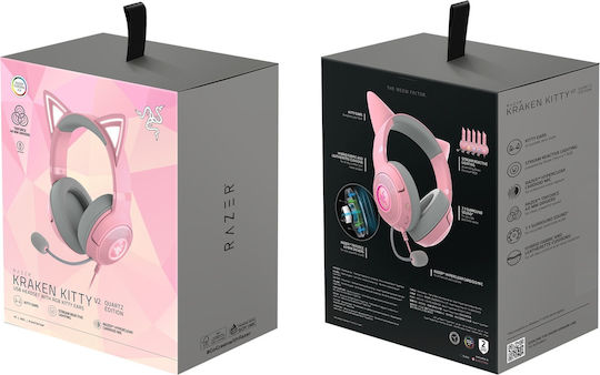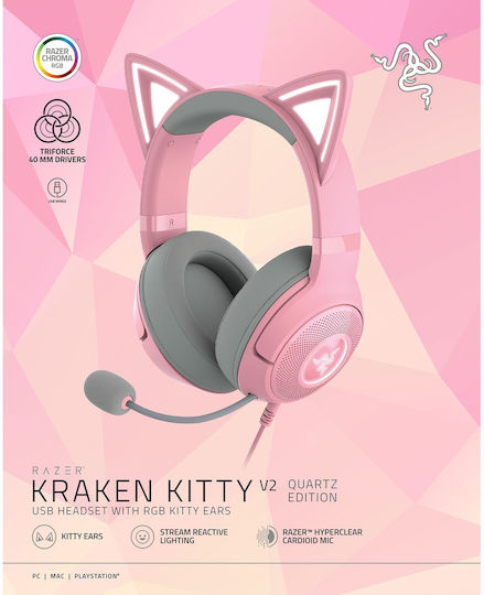 Razer Kraken Kitty V2 Over Ear Gaming Headset με σύνδεση USB Quartz