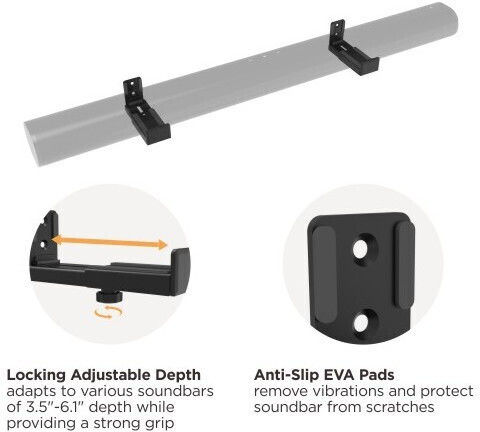 – Συμβατό με μπάρες ήχου από 90 έως 154 χιλιοστά βάθος