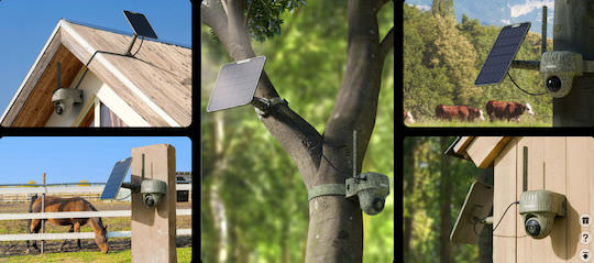 Κάμερα παρακολούθησης GSM/LTE/4G, ανιχνευτής κίνησης, εγγραφή και αποθήκευση σε κάρτα Micro SD, σχεδόν 360° ορατότητα, προσβάσιμη από το τηλέφωνο, tablet και υπολογιστή. Ιδανική για την παρακολούθηση περιοχών χωρίς ηλεκτρικό ρεύμα ή WIFI. Η κάμερα δεν απαιτεί καλώδια σύνδεσης ή ύπαρξη δικτύου WIFI. Είναι εξοπλισμένη με επαναφορτιζόμενη μπαταρία και σύνδεση 4G-LTE, γεγονός που την καθιστά αυτόνομη. Απαιτείται να υπάρχει σήμα κινητής τηλεφωνίας 4G-LTE ή τουλάχιστον 3G και μία κάρτα micro SIM για τη μεταφορά δεδομένων (δεν περιλαμβάνεται στην συσκευασία). Αν διαθέτει θύρα για κάρτα Micro SD, δεν χρειάζεται εξωτερικές συσκευές αποθήκευσης όπως DVR/NVR.