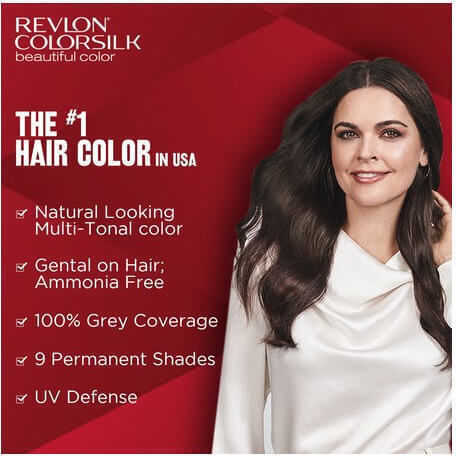 Μόνιμη βαφή μαλλιών REVLON Colorsilk, σχεδιασμένη για έντονο, ομοιόμορφο αποτέλεσμα που διαρκεί. Καλύπτει αποτελεσματικά τις λευκές τρίχες και προστατεύει την υγεία της τρίχας χάρη στις ενυδατικές και θρεπτικές πρωτεΐνες στη σύνθεσή της. Προσφέρει ομοιομορφία, λάμψη και απαλότητα, ιδανική για χρήση στο σπίτι ή στο κομμωτήριο.