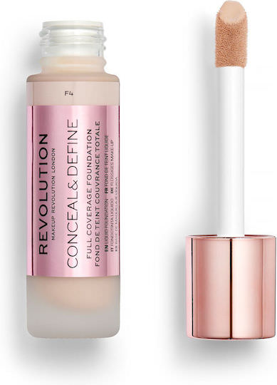 Revolution Makeup Conceal & Define Full Coverage Foundation. Προσφέρει ανάλαφρη αλλά δομημένη κάλυψη σε 50 αληθινές αποχρώσεις του δέρματος, σχεδιασμένη για να ταιριάζει σε κάθε τύπο και τόνο δέρματος. Χωρίς λάδι, με κρεμώδη και άνετη φόρμα. Στεγνώνει σε ένα μακράς διαρκείας, ημι-ματ φινίρισμα, χωρίς να κάθεται σε λεπτές γραμμές ή να κολλά σε στεγνά μπαλώματα.