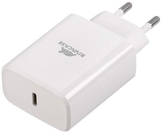 Φορτιστής RIVACASE PS4193 W00 λευκός, ισχύος 30W, με υποστήριξη PD 3.0 και 1 θύρα USB-C.