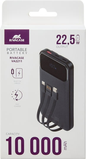 Rivacase VA2211 Power Bank 10000mAh 22.5W με Θύρα USB-A και Θύρα USB-C Μαύρο