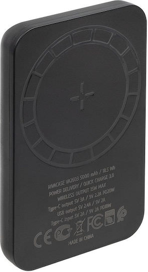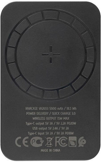 Rivacase VA2603 MagSafe Power Bank 5000mAh 20W με Θύρα USB-A και Θύρα USB-C Μαύρο