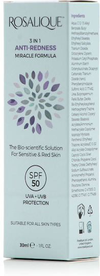 Rosalique 3 in 1 Anti-Redness Miracle Formula 24ωρη Κρέμα Προσώπου Ημέρας με SPF50 κατά των Ατελειών & της Ερυθρότητας με Πανθενόλη 30ml