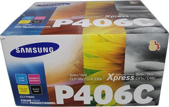 Samsung CLT-P406C Γνήσιο Multipack Toner Laser Εκτυπωτή Μαύρο/Κίτρινο/Κυανό/Ματζέντα 4τμχ SU375A