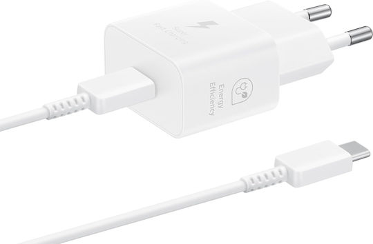 Samsung Φορτιστής με Θύρα USB-C και Καλώδιο USB-C – USB-C 25W Power Delivery Λευκός (EP-T2510X)