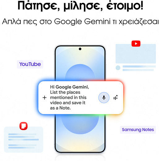 Ολοκληρώστε εργασίες χωρίς να χρειάζεται να αλλάξετε εφαρμογές. Απλά πατήστε παρατεταμένα το πλαϊνό κουμπί για να πείτε στο Google Gemini τι χρειάζεστε και θα φροντίσει τις διαδικασίες αμέσως.