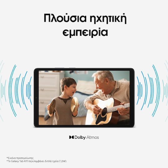 Το Galaxy Tab A11 διαθέτει διπλά ηχεία Dolby που προσφέρουν μια πλούσια, πολυδιάστατη εμπειρία ήχου. Από τις αγαπημένες σας λίστες αναπαραγωγής μέχρι τις πιο πρόσφατες ταινίες, ο καθηλωτικός τρισδιάστατος ήχος σας παρασύρει σε ένα ηχητικό τοπίο που είναι καθαρό και βαθιά καθηλωτικό. Το Galaxy Tab A11 διαθέτει επίσης υποδοχή ήχου 3,5 mm, ώστε να μπορείτε να απολαμβάνετε άνετα το περιεχόμενό σας με ενσύρματα ακουστικά.