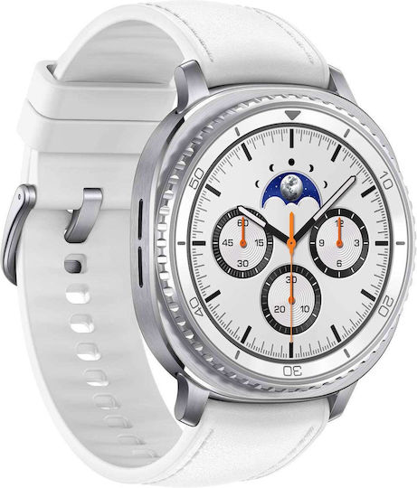 Samsung Galaxy Watch8 Classic LTE Stainless Steel 46mm Αδιάβροχο με eSIM και Παλμογράφο (Λευκό)