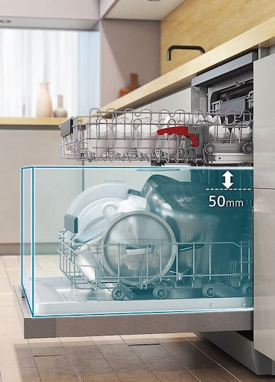 Με την ρυθμιζόμενη μεσαία σχάρα που έχει 3 διαφορετικές ρυθμίσεις και πτυσσόμενα δόντια στην κάτω σχάρα, μπορείς να απολαύσεις το κυριακάτικο ψητό σου χωρίς άγχη για το πλύσιμο μετά. Απλά τακτοποιείς τα πιάτα και το πλυντήριο αναλαμβάνει το υπόλοιπο!