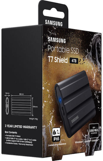 Samsung T7 Shield USB-C Εξωτερικός SSD 4TB 2.5″ Μαύρο