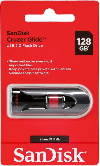 Sandisk Cruzer Glide 128GB USB 2.0 Stick Μαύρο