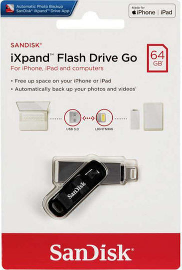 Sandisk iXpand 64GB USB 3.1 Stick με σύνδεση Lightning & USB-A Μαύρο