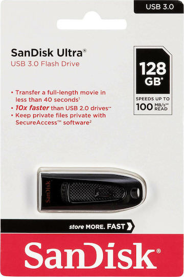 Sandisk Ultra 128GB USB 3.0 Stick Μαύρο