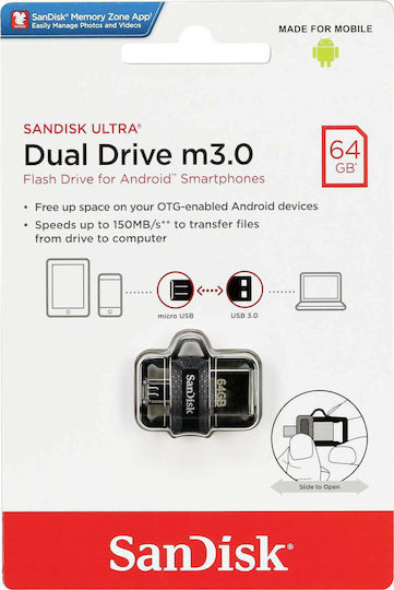 Sandisk Ultra Dual Drive M3.0 64GB USB 3.0 Stick με σύνδεση USB-A & micro USB-B Μαύρο