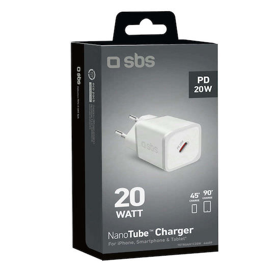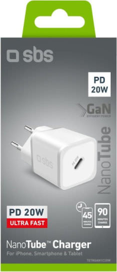 SBS Φορτιστής Χωρίς Καλώδιο GaN με Θύρα USB-C 20W Power Delivery Λευκός (TRGAN1C20W)