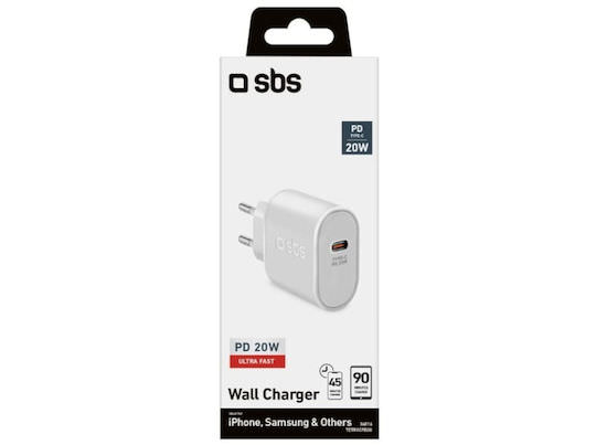 SBS Φορτιστής Χωρίς Καλώδιο με Θύρα USB-C 20W Power Delivery Λευκός (TETR1CPD20)