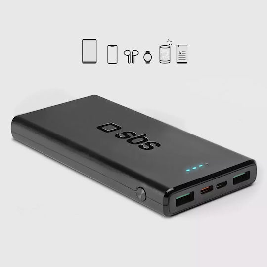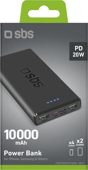 SBS Power Bank 10000mAh 20W με 2 Θύρες USB-A και Θύρα USB-C Power Delivery Μαύρο