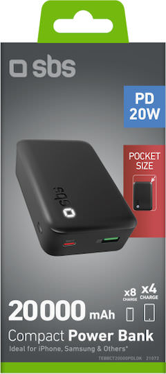 SBS Power Bank 20000mAh 20W με Θύρα USB-A και Θύρα USB-C Power Delivery Μαύρο