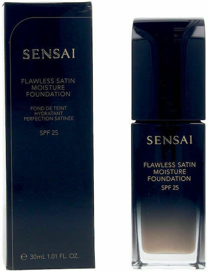 Το υγρό make up Sensai Flawless Satin Moisture Foundation SPF25 είναι πλούσιο σε ενυδατικά συστατικά που διατηρούν την επιδερμίδα ελαστική και μεταξένια λεία. Ο δείκτης προστασίας SPF προστατεύει από την πρόωρη γήρανση που προκαλείται από την ηλιακή ακτινοβολία.
