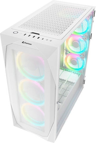 Sharkoon REV300 Gaming Full Tower Κουτί Υπολογιστή με Πλαϊνό Παράθυρο και RGB Φωτισμό Λευκό