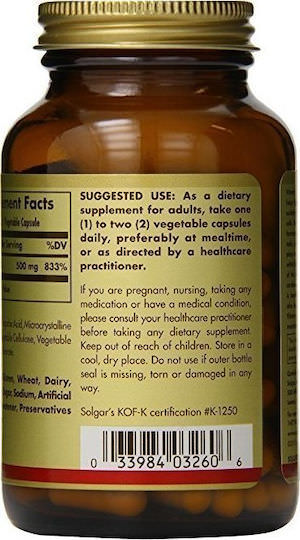 Solgar Vitamin C Βιταμίνη για Ενίσχυση του Ανοσοποιητικού, τo Δέρμα & Αντιοξειδωτική δράση 500mg 100 φυτικές κάψουλες